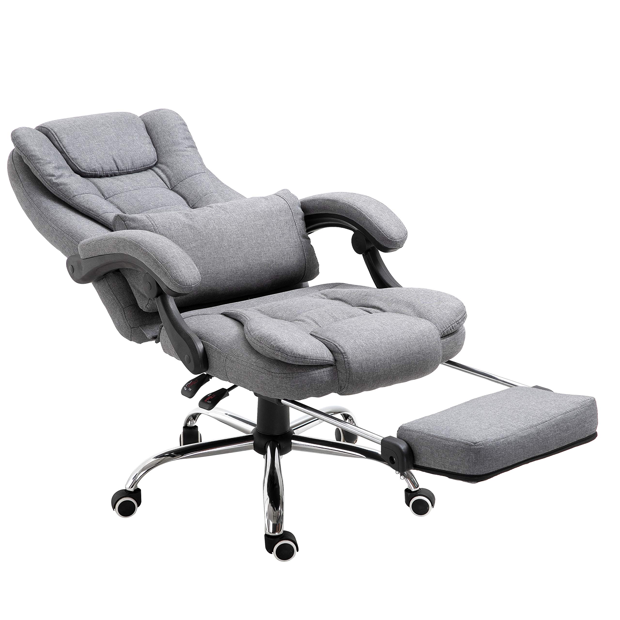 View Executive Reclining Computer Desk Chair With Footrest Headrest And Lumbar Cushion Support Furniture Pics