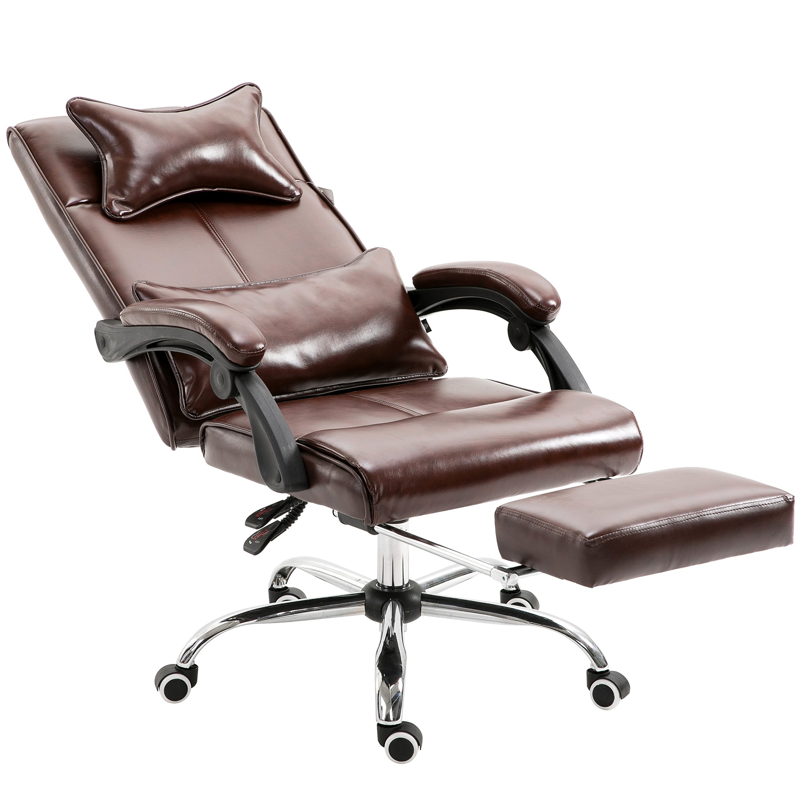 View Executive Reclining Computer Desk Chair With Footrest Headrest And Lumbar Cushion Support Furniture Pics. Ergonomic reclining office chair with footrest, high back leather napping office computer desk task chair, executive swivel lift chair casual. Searching for a comfortable reclining office chair with a foot rest?